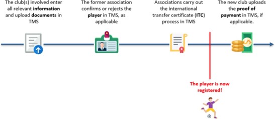According to Figure 1. The player transfer mechanism shows how the player’s new club handles the transfer process. The new club begins by entering the necessary information into the system. Secondly, the home club association where the player was last registered should confirm the registration. Thirdly, the association processes the international transfer certificate in TMS. Fourth, the new club uploads payment proof.