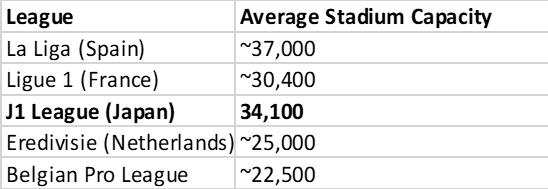 Additionally, some J.League clubs outperform well-known European teams in terms of match attendance: