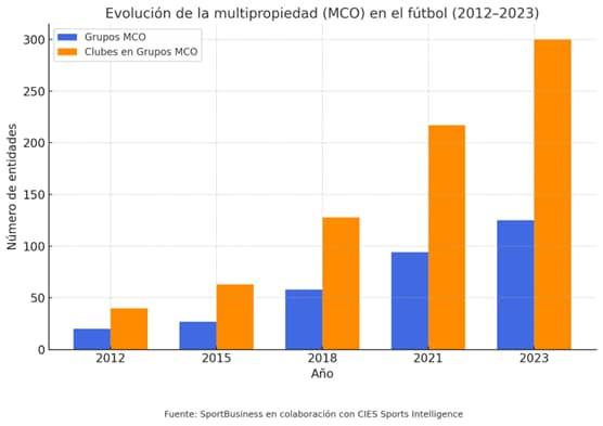 En los últimos años, la expansión de estas redes multi-club se ha acelerado drásticamente. Sin embargo, la propiedad multi-club no es una innovación reciente. Ya en los años 90, ENIC (English National Investment Company) comenzó a adquirir participaciones en clubes como el Tottenham Hotspur, Rangers FC, Slavia Praga y AEK Atenas, considerando el fútbol principalmente como un vehículo de inversión. Posteriormente, el modelo evolucionó con la adquisición de múltiples clubes por parte de Red Bull como estrategia de marketing, y más tarde con la aparición del City Football Group (CFG), ampliamente considerado como el primer ejemplo estructurado y estratégico del modelo MCO moderno. La cartera global de CFG abarca actualmente 13 clubes en cinco continentes.